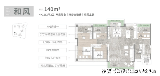 建面140平4+1房:四开间朝南,南向采光面达到15.7米,南北双阳台设计,一面观景一面生活,实用性与观赏性兼具。延续LDKB一体化设计,让公共区域更显开阔,主套配置270度折叠屏飘窗,拓展景观视野,闲暇时可凭窗远眺山景,享受惬意时光。额外灵动空间可根据需求改造为书房、儿童房、储物间等,适配家庭不同阶段的居住需求。